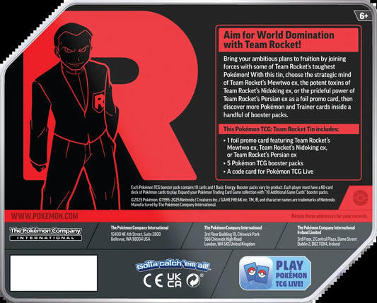Scarlet & Violet Destined Rivals Team Rocket'S Mewtwo Ex Tin Set [5 Booster Packs & Promo Card]